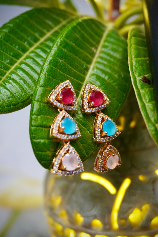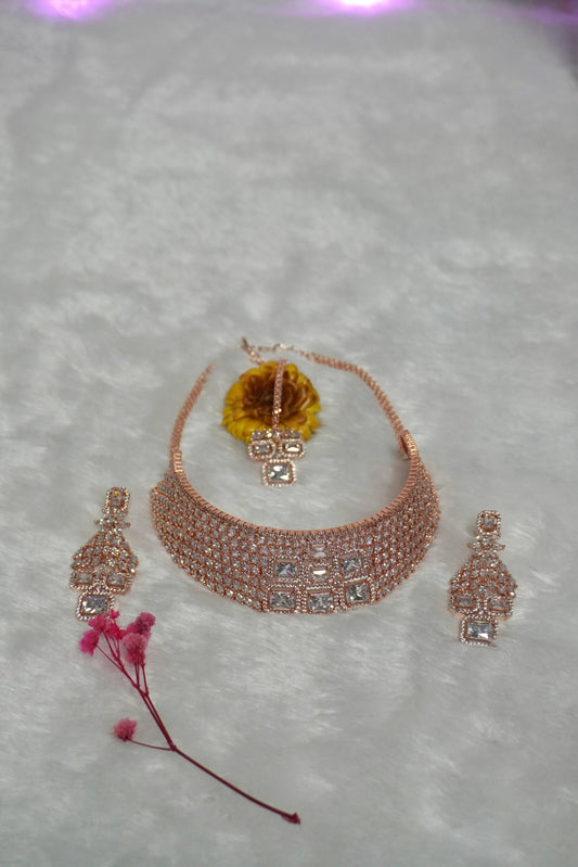- Our American Diamond sets are available in silver colour, rose gold and antique gold finishing.