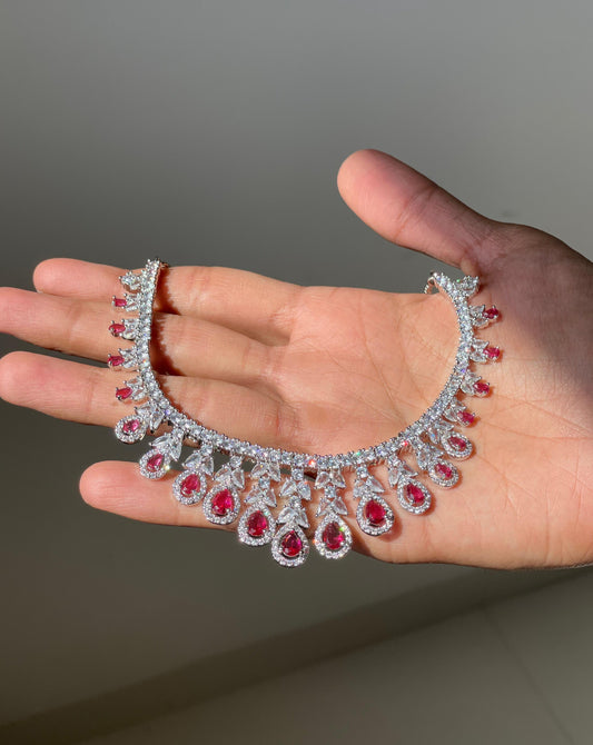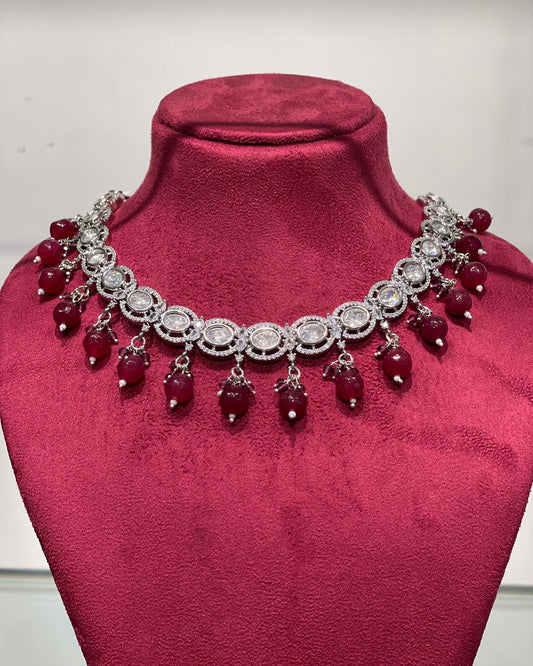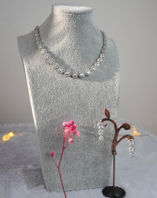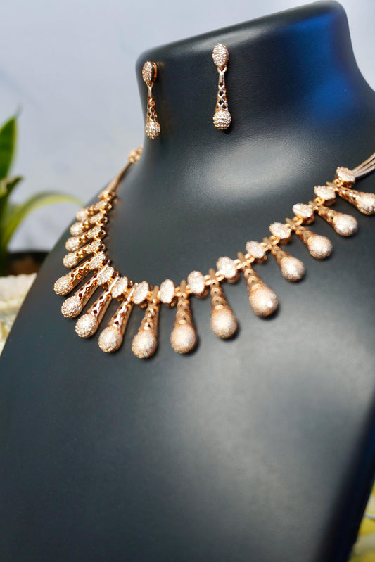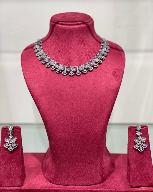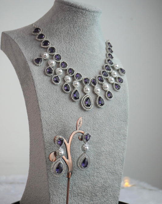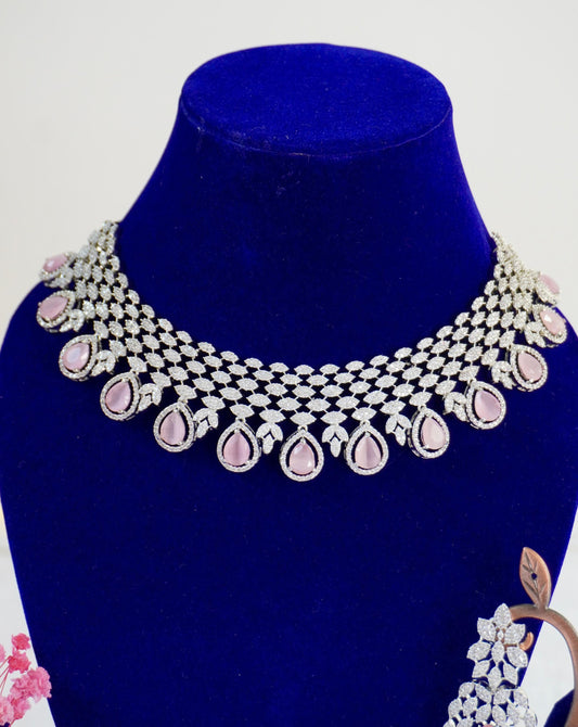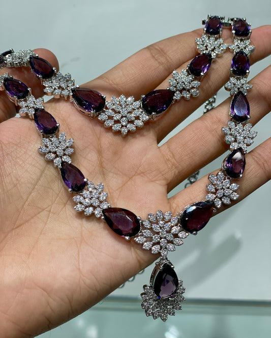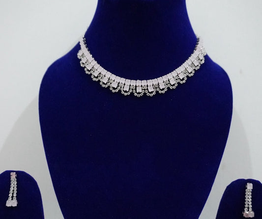 American diamond necklaces also known as ad necklace sets are made from cubic zirconia (CZ) / ad stones. These stones are set in metal alloys like copper, and brass etc., While these necklaces are not as hard or as rare as real diamonds, however, these are known for their affordability and stylish look.