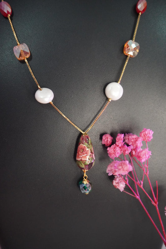Rose Gold Pink Pendant Chain C007