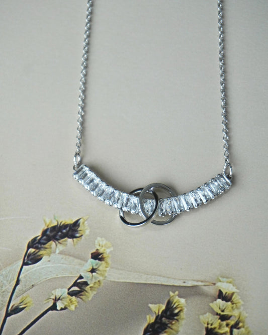 Phool silver American diamond necklace