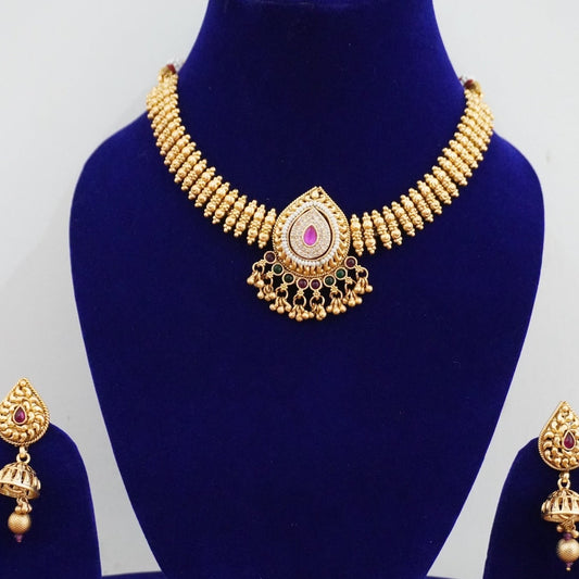 Magenta Antique Gold Short Necklace AGK001