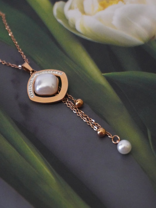 Jinny Rose Gold Square Pearl Pendant