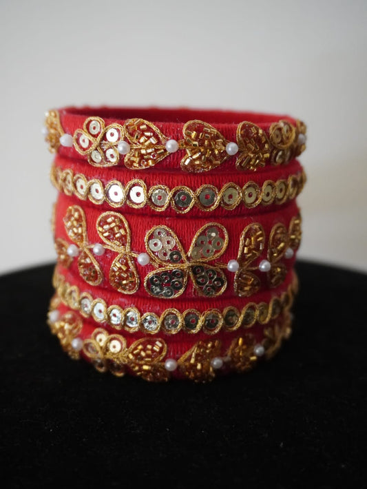 Sneha Golden Work Red Thread Bangles