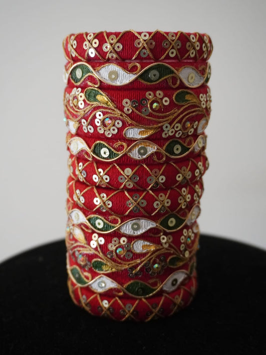 Mayuri Golden Work Red Traditional Bangles